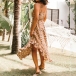 When strolling on the street with this dress,you can easily be a pleasant sight to draw more attention. The leopard printed details make it look more eye-catching. Sling style,with backless,v-neck and an irregular ruffle hem design,sexy and alluring. On these sunny days,adding a sweet straw hat would be more perfect!