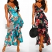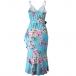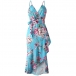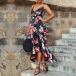 Sexy Backless V-neck Irregular Ruffle Hem Printed Sling Dress