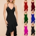 Sexy Backless V-neck Irregular Ruffle Hem Solid Color High Waist Sling Dress