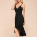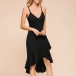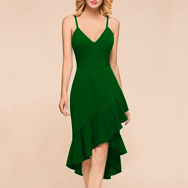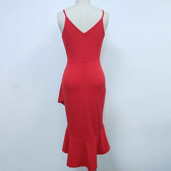 Sexy Backless V-neck Irregular Ruffle Hem Solid Color Sling Dress