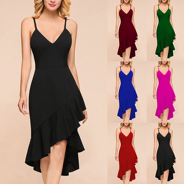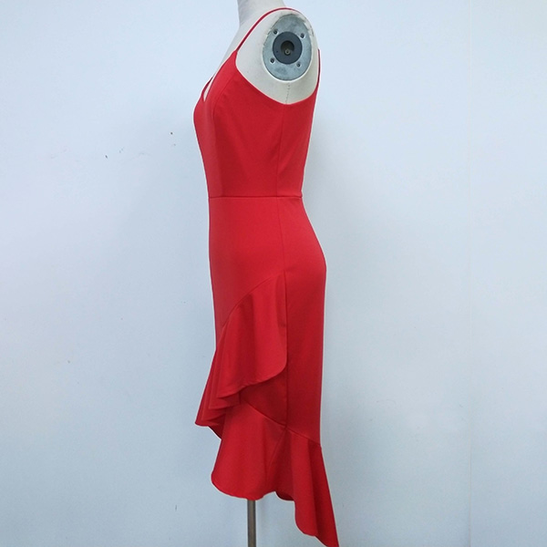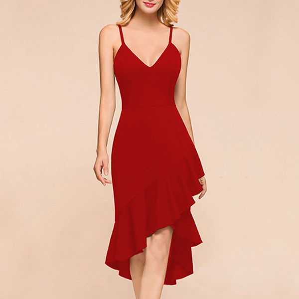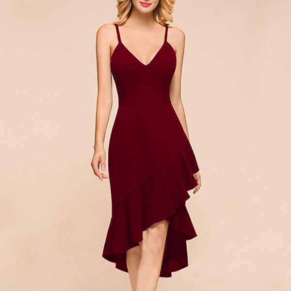 When invited to some fancy events like cocktail parties or weekend gatherings,you can trust in this dress to express your beauty and charm. Sling style,with backless,v-neck and an irregular ruffle hem,which make this piece look so sexy and flirty. Dress it up with your sexy heels and elegant clutch,you can look more beautiful and stunning!