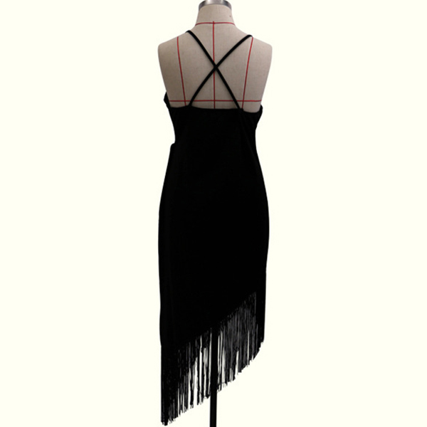 Sexy Backless V-neck Irregular Tassel Hem Sling Dress