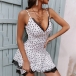 Sexy Backless V-neck Lace Spliced Dots Printed Sling Dress