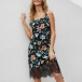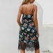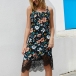 Sexy Backless V-neck Lace Spliced Hem Printed Sling Dress
