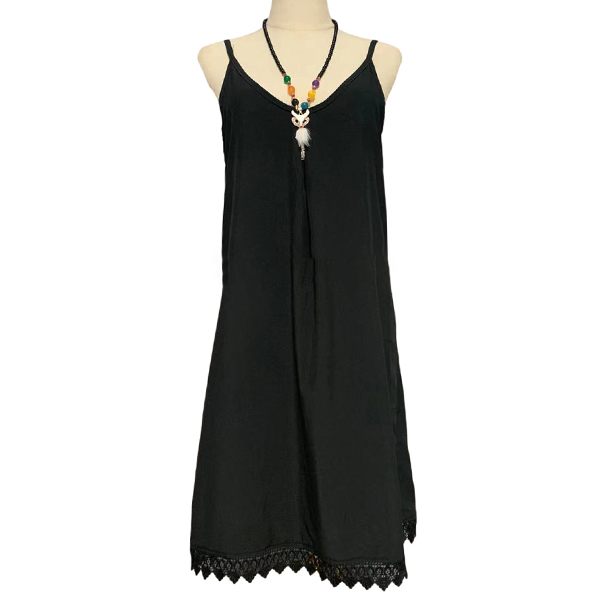 Hey,girls,you can just slip into this relaxed style dress to greet the sun-soaked summer days. Sling style,with backless,v-neck and lace spliced hem design,these design details can make you look more alluring and beautiful. And the soft fabric and loose silhouette design can give you a cool and comfortable day. Add this piece to your summer wardrobe!