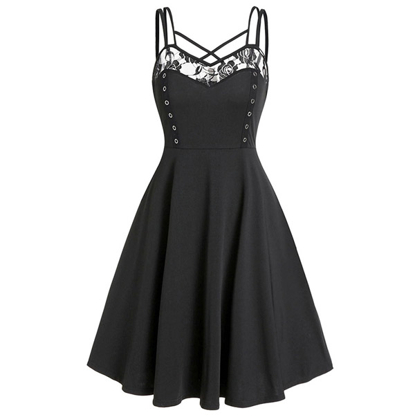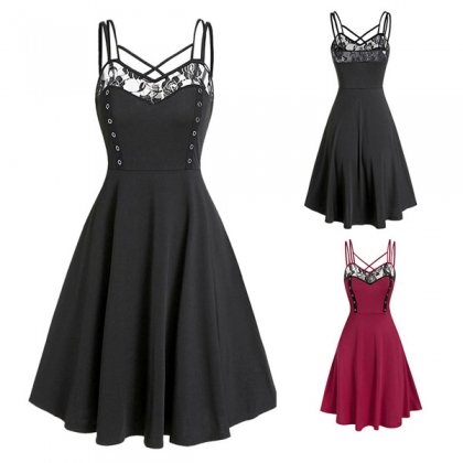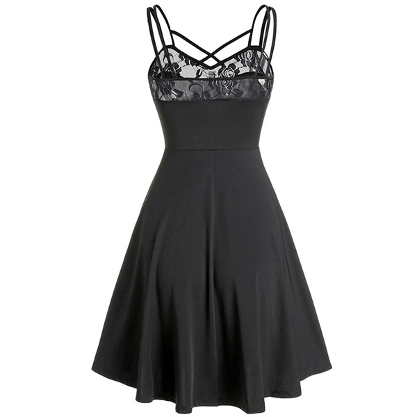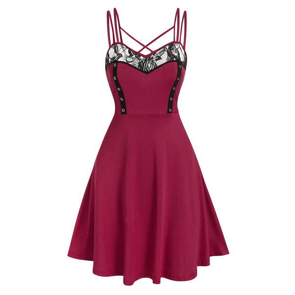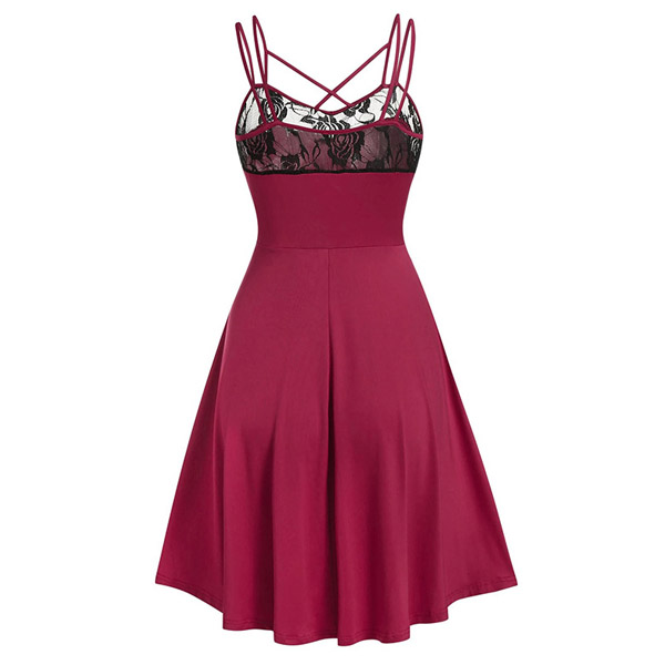 Flutter some hearts tonight in this darling dress. The backless,v-neck and lace-trim details at the neckline part can exude your flirty yet feminine side. And the adjustable extra-narrow shoulder straps can showcase your charming shoulder. When invited to some night events,you can trust in this piece to express your beauty and charm.