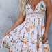 Sexy Backless V-neck Lace Spliced Hollow Out High Waist Sling Printed Dress