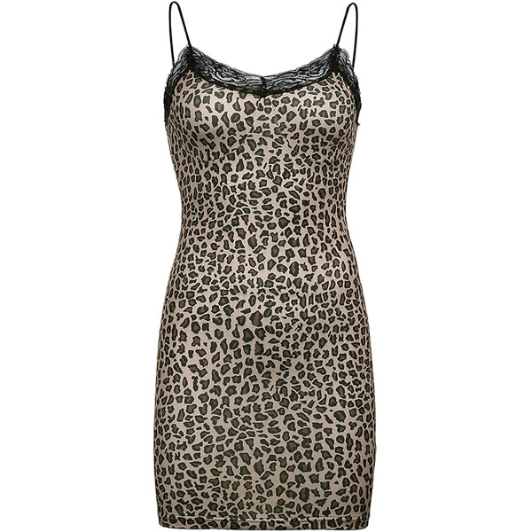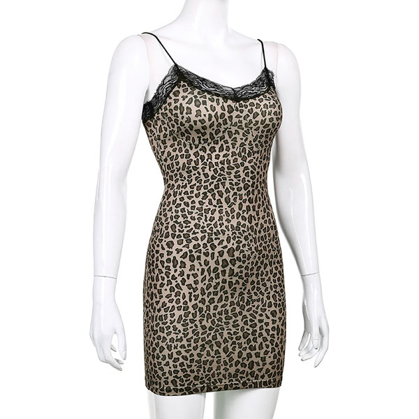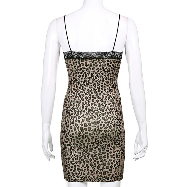 Sexy Backless V-neck Lace Spliced Leopard Printed Slim Fit Sling Dress