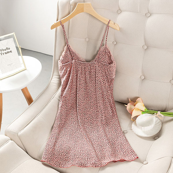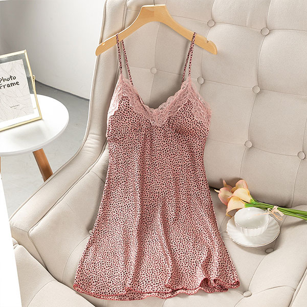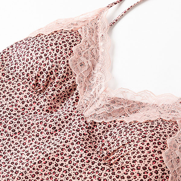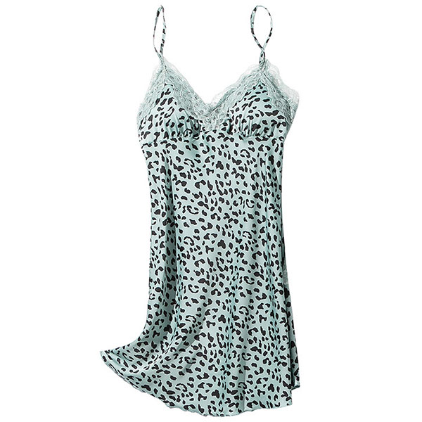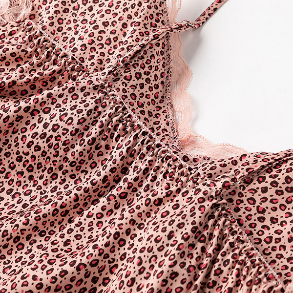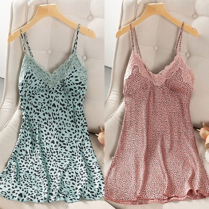 Sexy Backless V-neck Lace Spliced Leopard Printed Sling Nightwear Dress