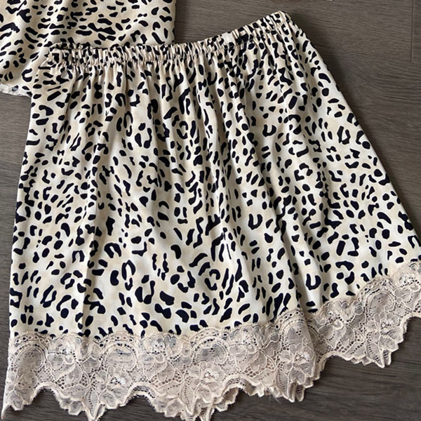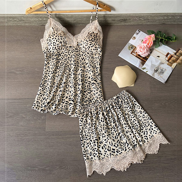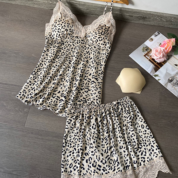 For your summer days,this nightwear set is your perfect choice for your home time and sleeping time. The leopard printed details make it look so eye-catching. Including a backless v-neck lace spliced sling top and a shorts,this nightwear set not only can exude your flirty side,but also can ensure the comfy.