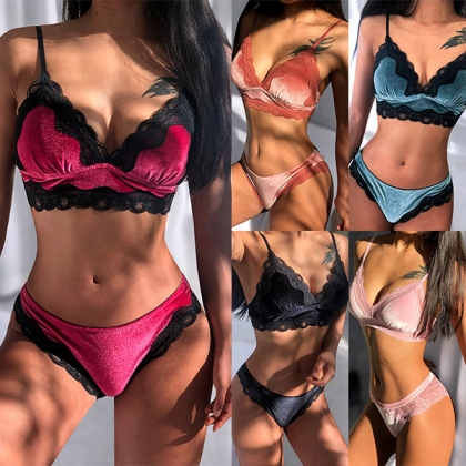 Sexy Backless V-neck Lace Spliced Low-waist Bra Underwear Set