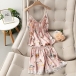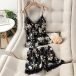 Sexy Backless V-neck Lace Spliced Printed Sling Top + Shorts Nightwear Set