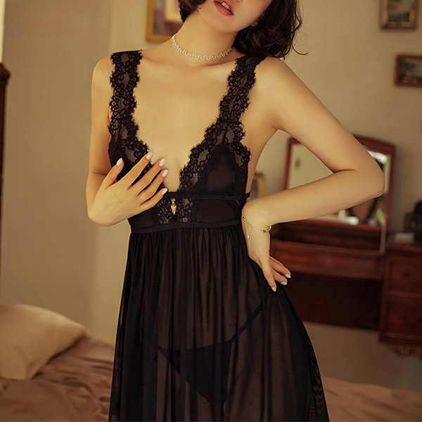 For the girls,a cozy yet alluring nightwear set is an essential. See-through style,with backless,deep v-neck and lace spliced details,this two-piece set is a good weapon to express your beauty and charm. Including a sleeveless nightwear dress and a T-back,this two-piece set can ensure you a good sleeping!