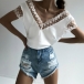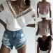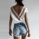 Sexy Backless V-neck Lace Spliced Short Sleeve Top