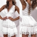Sexy Backless V-neck Lace Spliced Sleeveless Dress