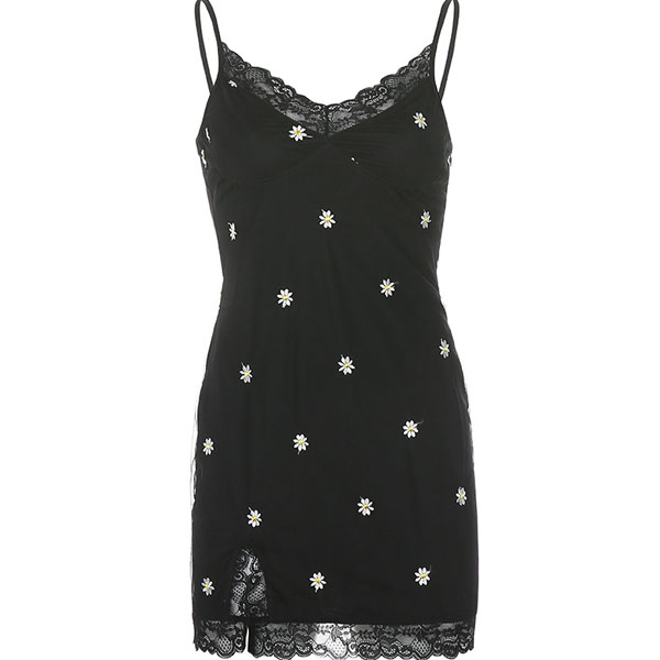 Sexy Backless V-neck Lace Spliced Slim Fit Printed Sling Dress
