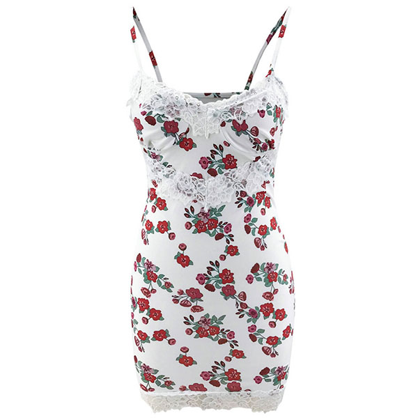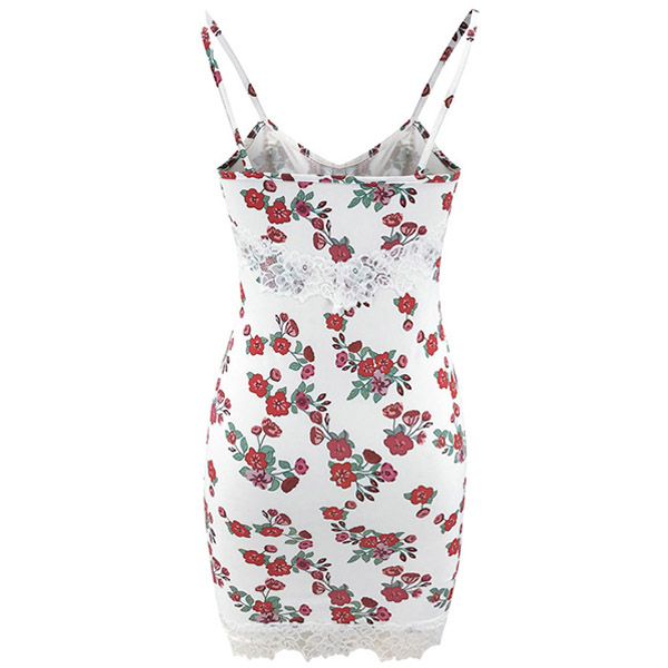 Sexy Backless V-neck Lace Spliced Slim Fit Printed Sling Dress(The size falls small)