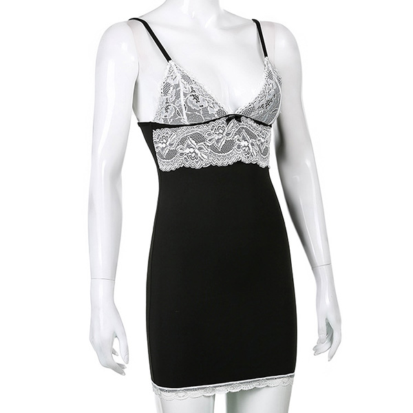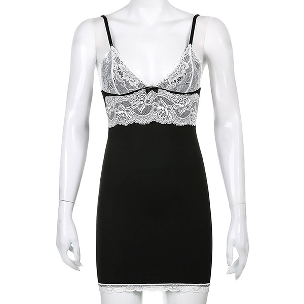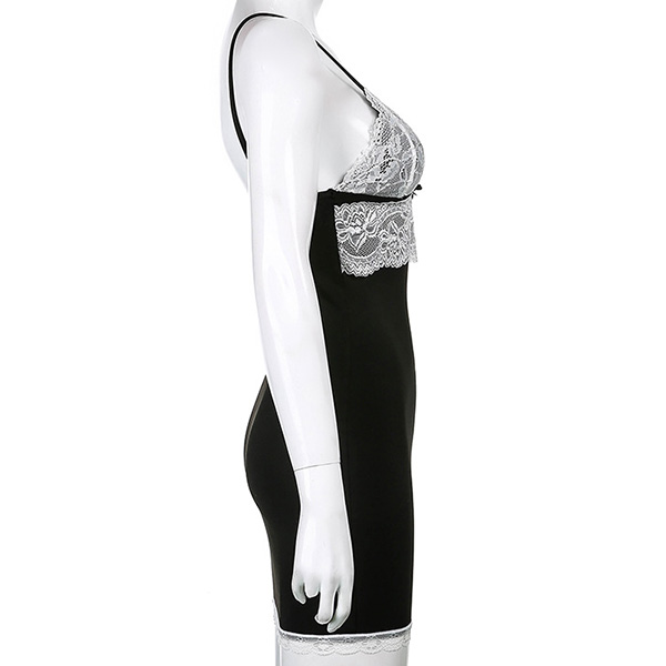 Sexy Backless V-neck Lace Spliced Slim Fit Sling Dress