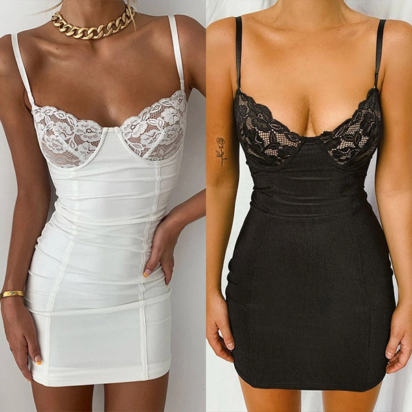 Look exceptionally stunning when you slip into this dress. Its alluring design details like backless,v-neck and lace spliced make this sling dress full of flirty and feminine appeal. Thanks to the fit silhouette design,this dress also can portray your perfect curve. You can trust in this piece to be the focus.