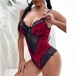 Wanna exude your alluring feminine side? Then you can just slip into this bodysuit. Sling style,with backless,deep v-neck and lace spliced details,which can offer you a more alluring look. And the soft,breathable fabric can give you a comfortable day. It is perfect fit for your hot nights and honeymoon time.