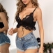 Hey,girls,you can inject a dash of sexy and flirty vibes to your wardrobe with the help of this sling lingerie. It is designed with backless,v-neck and lace spliced details,which can better exude your alluring side. You can just match it with your high waist bottoms to win more envious eyes.