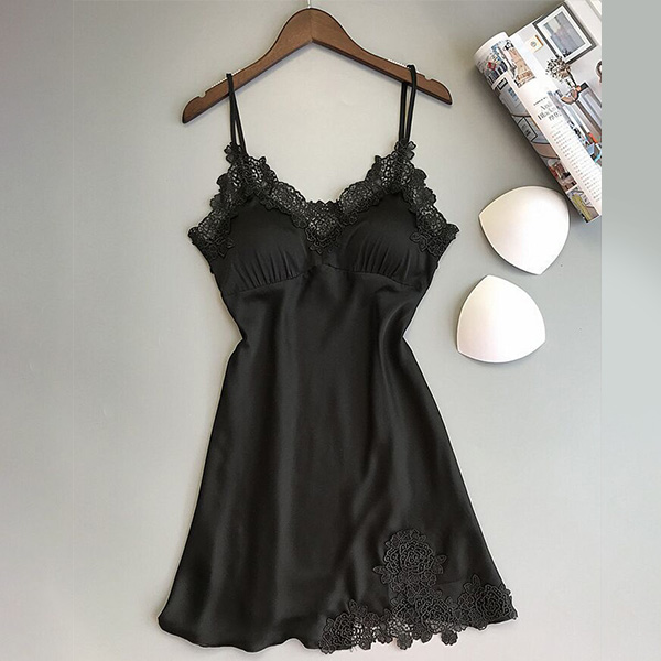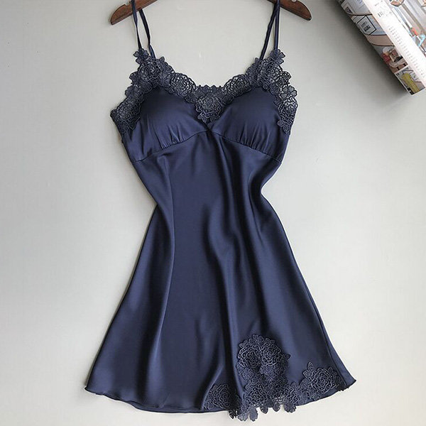 Wanna an utmost sleeping time in these sun-soaked summer nights? Then let this nightwear dress give you that feeling! Sling style,with backless,v-neck and lace spliced details,this piece not only can exude your charming feminine appeal,but also give you the comfortable wearing feeling.