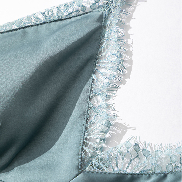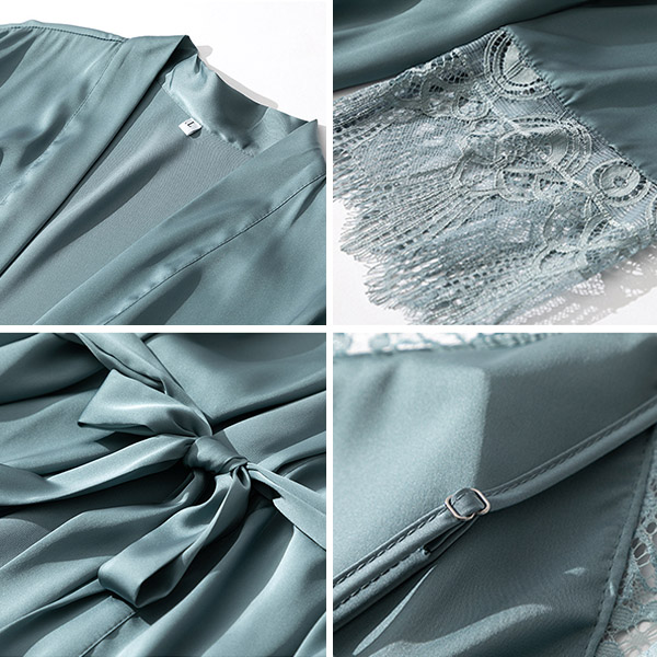 This nightwear set consists of a sling dress and a robe,which is a good way to express your sexy and flirty side. The elastic design at the back side and soft,breathable fabric can ensure the comfy,while the detachable pad design can better highlight your full chest. Meanwhile,the backless,v-neck and lace spliced details can exude your femininity. You can just enjoy your sleeping time with this nightwear set!