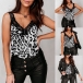 Sexy Backless V-neck Lace Spliced Sling Printed Top