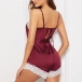 During your home time,you still can exude your sexy and flirty side through this romper! Sling style,with backless,v-neck and lace spliced design,sexy and alluring. Its super soft and breathable fabric can give you an utmost comfort. Make your home life full of delight with this little pieces.