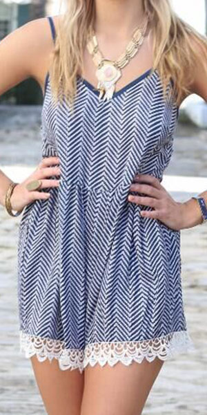 romper. Sling style,with backless,v-neckline and lace spliced hem,slip into this wonderful piece