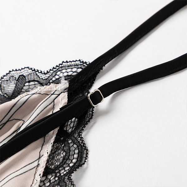 If you want a nightwear that looks low-key but elegant,then look here! Black lace with light color, looks elegant and generous. The sling and V-neck design of the top can highlight the perfect curve of the chest and back. Paired with a pair of black shorts and a long sleeve robe,this nightwear three-piece set can be fit for you in different seasons.