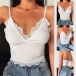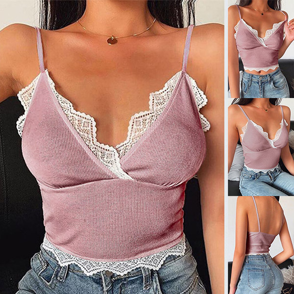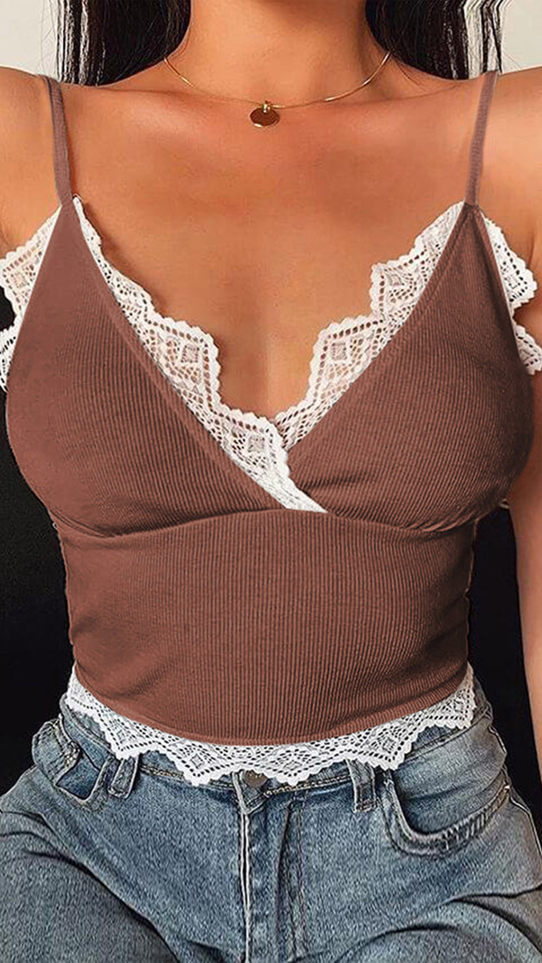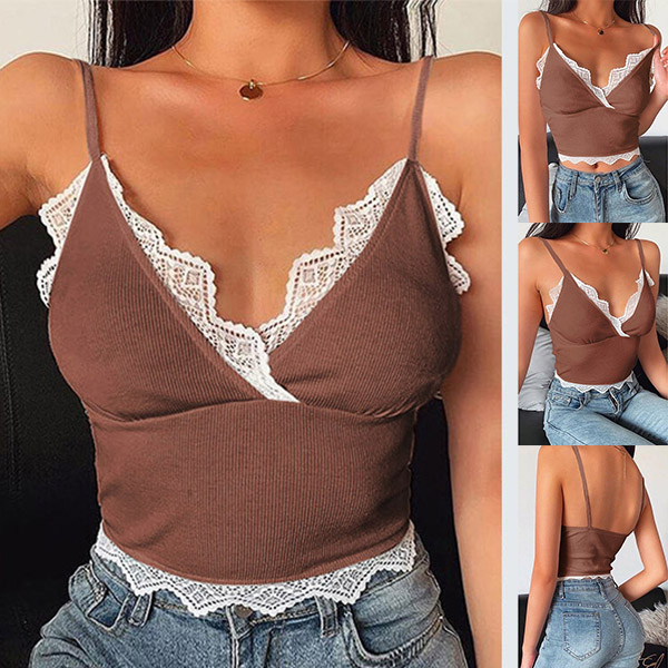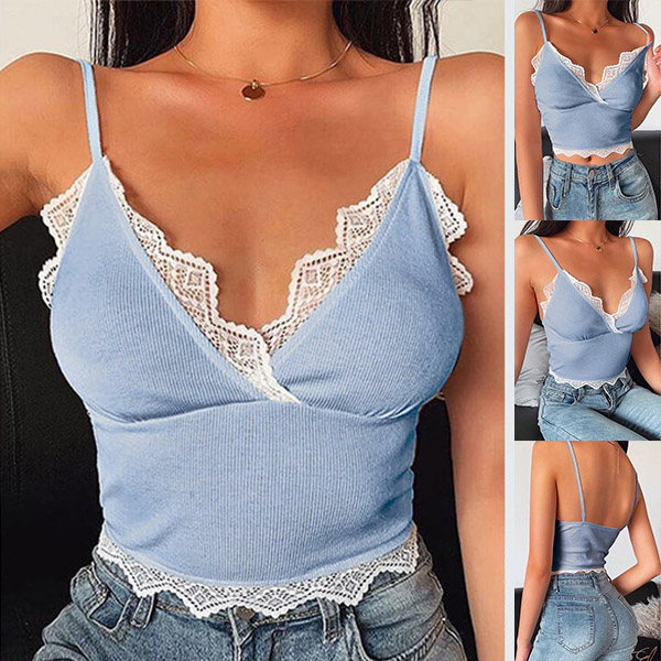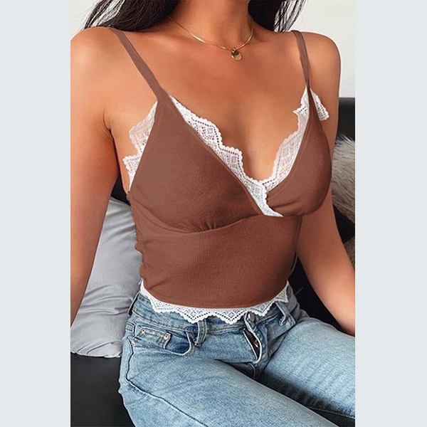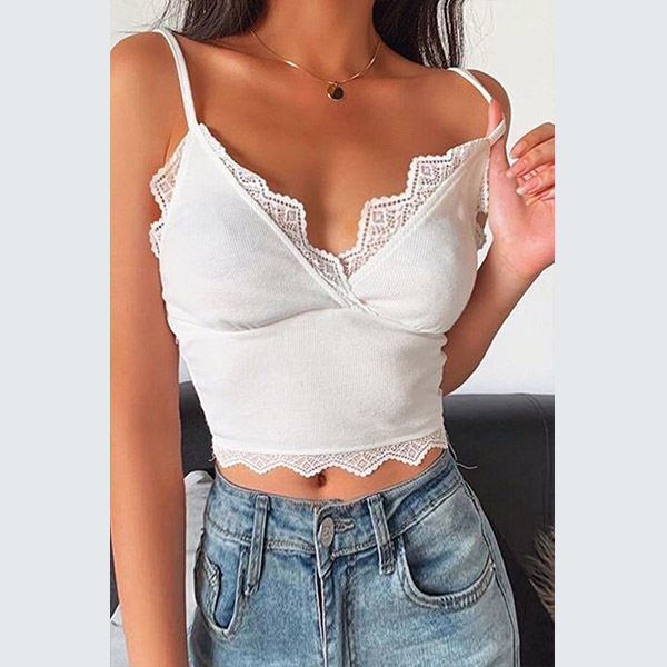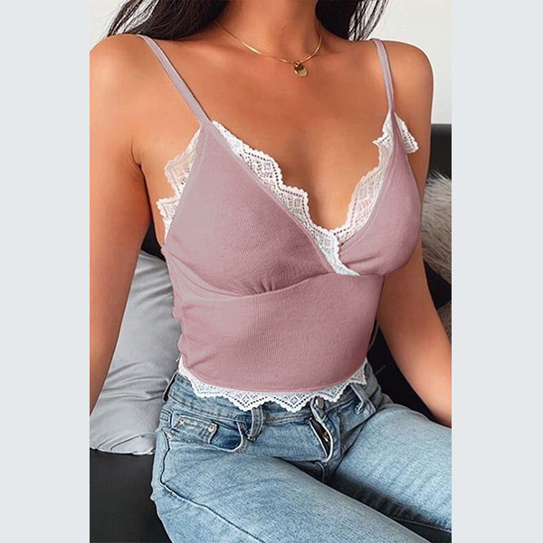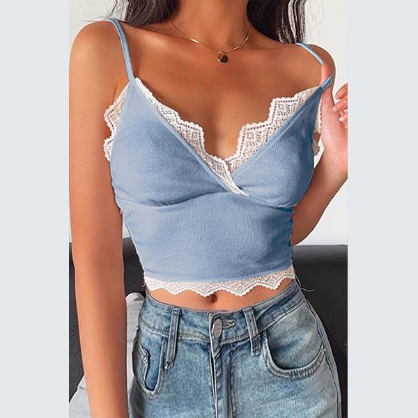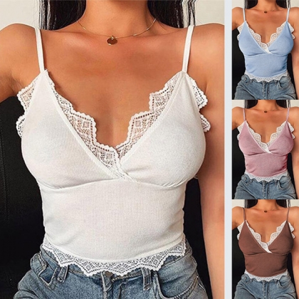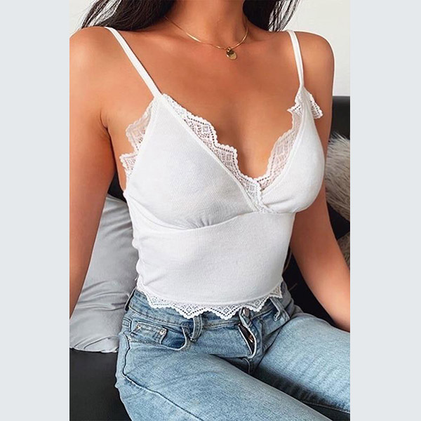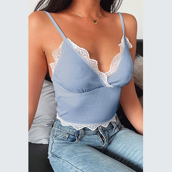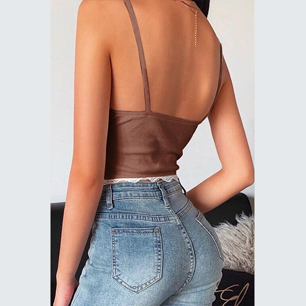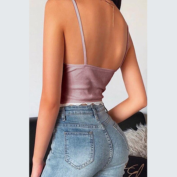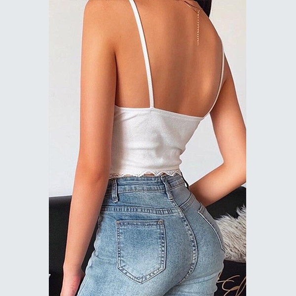 Combines of sexy and flirty vibes,this wonderful piece is a good weapon to expose your charming skin. Sling style,with backless,v-neck and lace spliced details make this piece look so alluring. Try to match with your high waist shorts to achieve for a charming summer look.