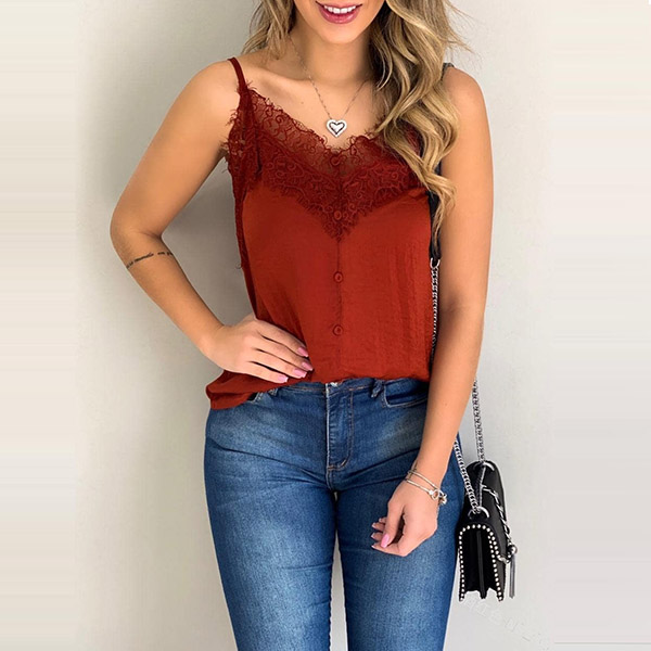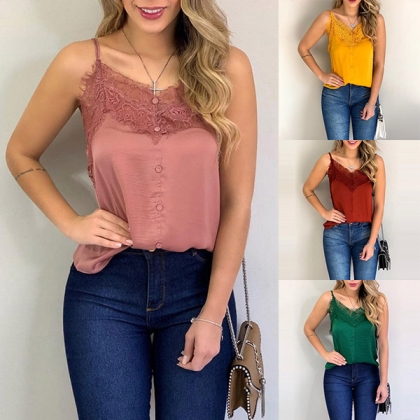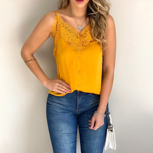 Ensure your summer wardrobe ensemble with this sling top. It boasts a solid color,the alluring design details like backless,v-neck and lace spliced details make this piece look so sexy and flirty. Try to match with a shorts to enjoy your summer days.