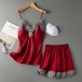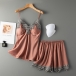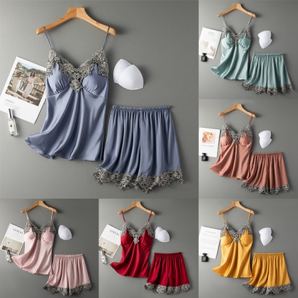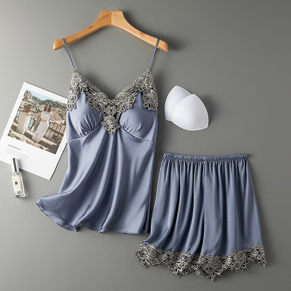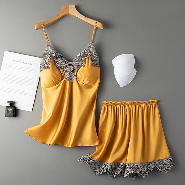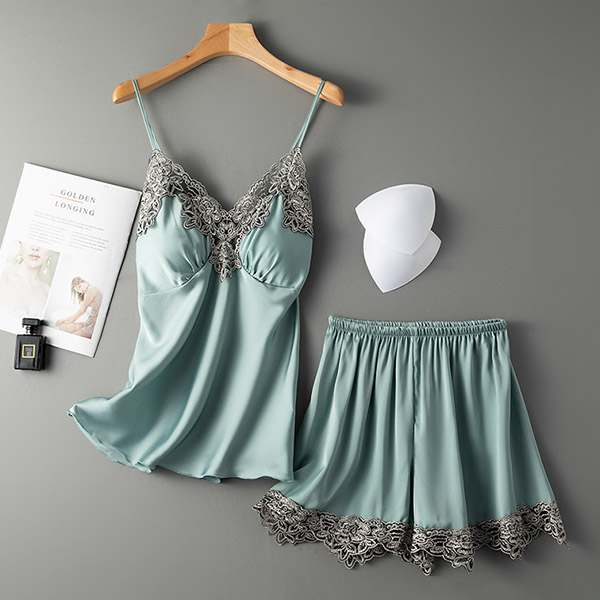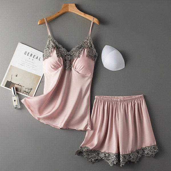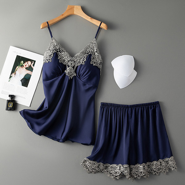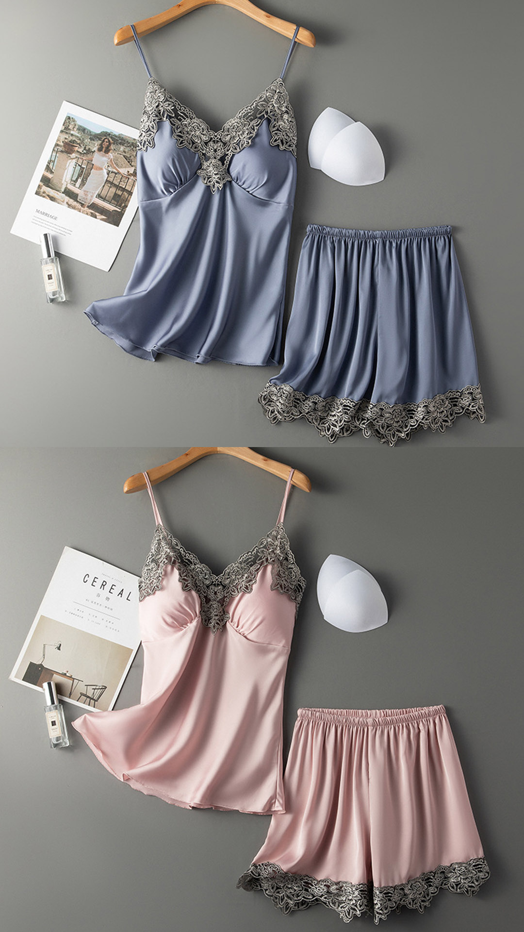 Don't like too simple and conservative night-wears? If your answer is no,then you can make your eyes focused on this two-piece set. Including a backless v-neck sling top and a shorts,designed with lace spliced details,sexy yet alluring. Its smooth and ultra-thin fabric can keep the comfy. Your perfect choice in these hot summer nights.