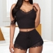 Sexy Backless V-neck Lace Spliced Sling Top + Shorts Lingerie Set