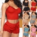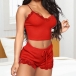 Inject a dash of sexy and flirty vibes to your wardrobe with this lingerie set. Solid color style,including a backless v-neck sling crop top and a shorts,designed with lace spliced details,this two-piece set knows how to express your flirty and alluring side. It is perfect fit for your night sleeping time.