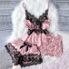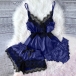 Sexy Backless V-neck Lace Spliced SLing Top + Shorts Nightwear Three-piece Set