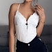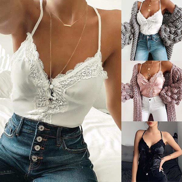 For these hot summer days,a cami top is an essential. So how about this piece? It features a solid color,the backless,v-neck and lace spliced design make it look so sexy and alluring. It not only can expose your charming skin,but also can exude your alluring sense. So why not take interest in it?