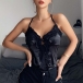 Sexy Backless V-neck Lace Spliced Solid Color Cami Top
