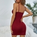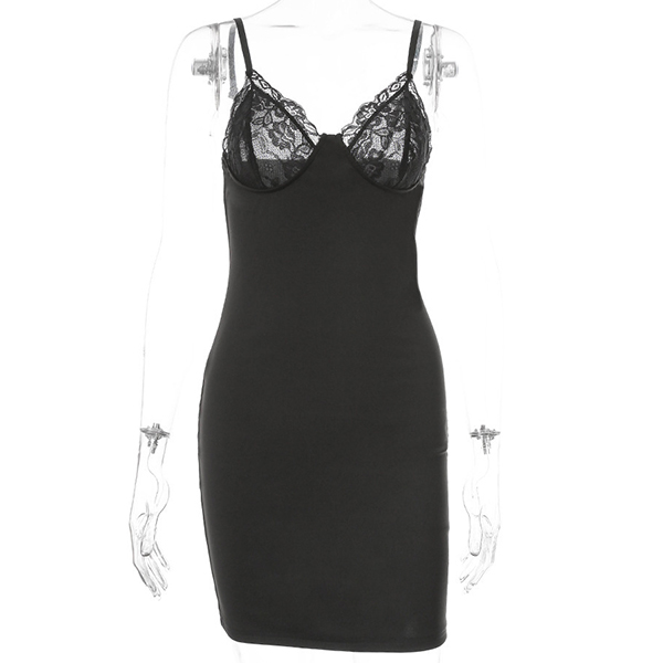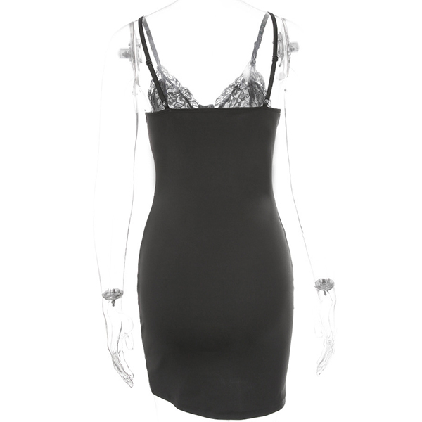 Sexy Backless V-neck Lace Spliced Solid Color Slim Fit Sling Dress
