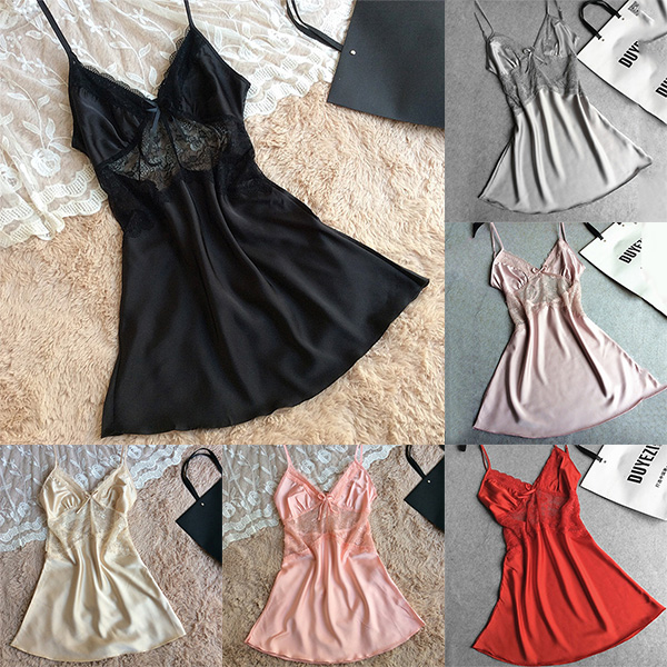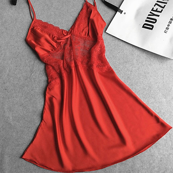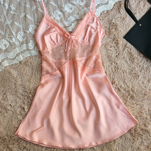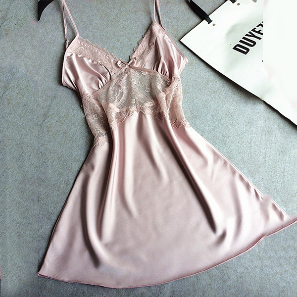 you this nightdress. Sling style,designed with backless,v-neck and lace spliced details,sexy and seductive.