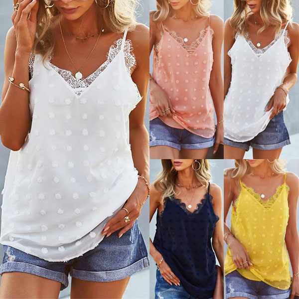 Make your summer wardrobe more complete by adding this wonderful top. Sling style,with backless,v-neck and lace spliced details,sexy and alluring. Solid color style,its soft,breathable fabric and loose silhouette design can ensure you a cool and comfortable day. We suggest you matching with a shorts to enjoy your summer days.