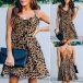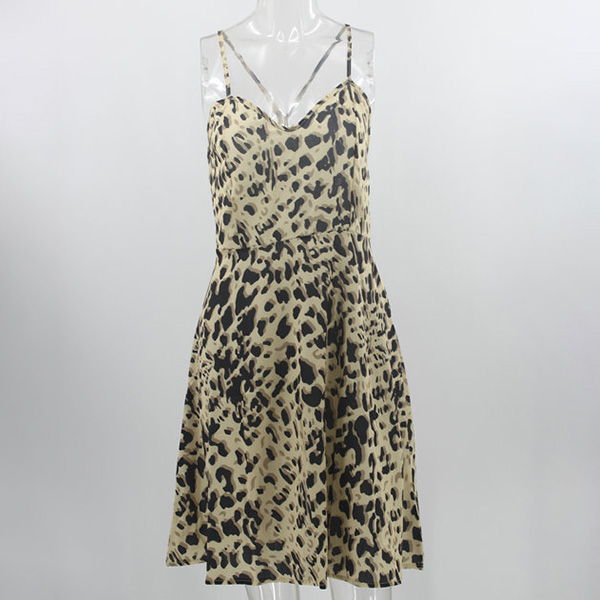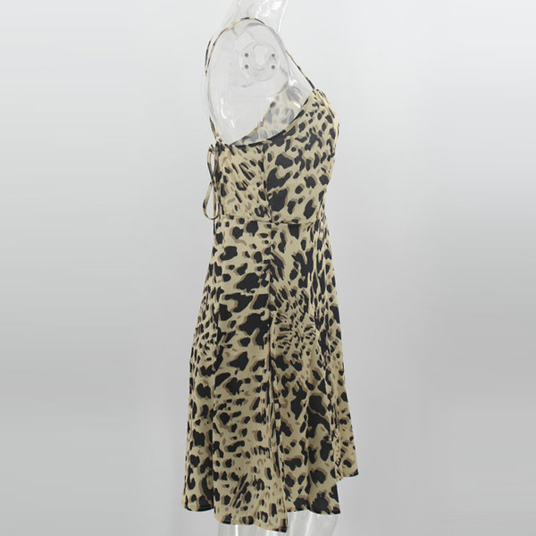 Sexy Backless V-neck Leopard Printed Sling Dress