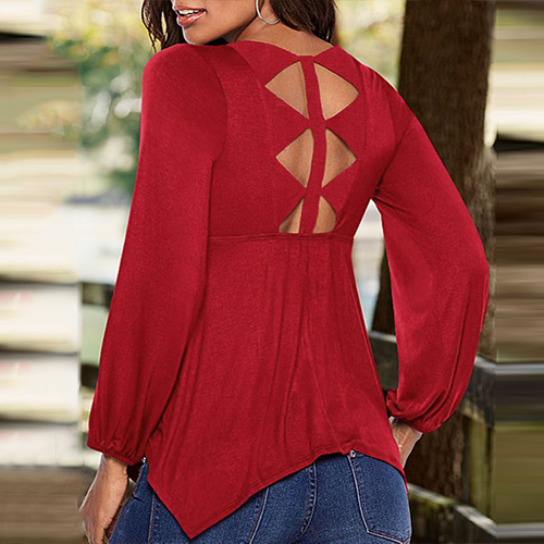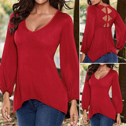 Add a touch of sexy and feminine vibe to your look with this t-shirt. Solid color style,its backless,v-neck and irregular hem design