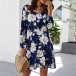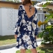 Sexy Backless V-neck Long Sleeve Printed Dress