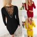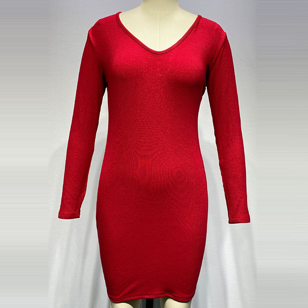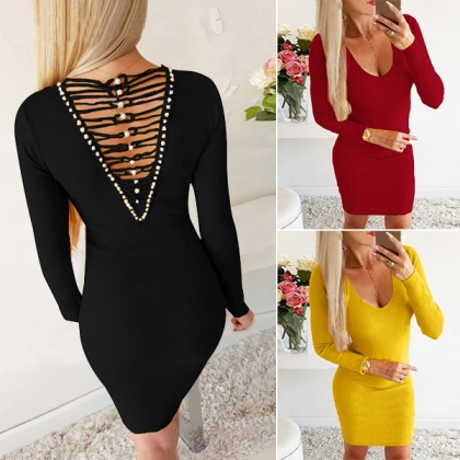 Sexy Backless V-neck Long Sleeve Solid Color Slim Fit Dress