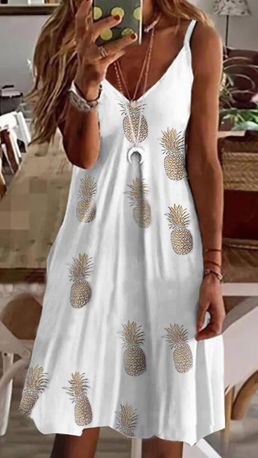 To greet the sun-soaked summer days,you need such a relaxed and dreamy dress. Sling style,with backless and v-neck design,which can offer you a sexy and alluring look. Its chic printed details will boost its entire charm,while the soft fabric and loose silhouette design can maintain the comfy.