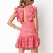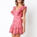 Sexy Backless V-neck Lotus Sleeve Ruffle Hem Lace Dress