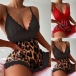 When having a romantic night time with your lover,then you can trust in this lingerie to add some different flavor to your life. The plaid/leopard spliced details will enrich the design style. Sling style,with backless,v-neck and lace spliced details,this piece also can exude your alluring and feminine side.