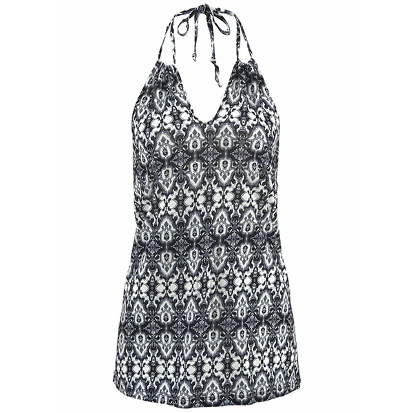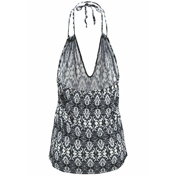 This top features chic printed details,which can offer you a more eye-catching look. Halter style,with backless design,this top also can exude your sexy and alluring side. We suggest you matching with your favourite shorts to achieve for a fashionable summer look.